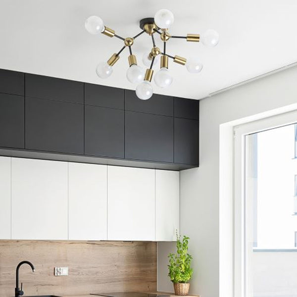 Pendelleuchte mit dekorativen Fassungskappen aus Messing. Die Leuchte kann durch Verstellen der Arme in der horizontalen Achse geformt werden. Für LED-Wandleuchten mit E27-Fassung geeignet.