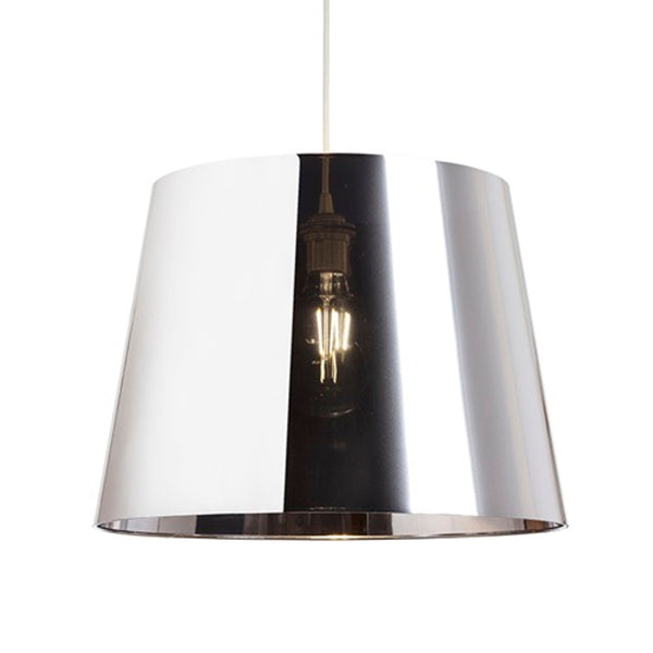 Dekorativer Lampenschirm aus verchromter Folie für Hänge- oder Stehleuchten. Der Lampenschirm ist versiegelt, im beleuchteten Zustand teilweise durchsichtig. Passendes Zubehör: HEX, ELISA, ENZO, LISA, KOMBIX, BEND, ALVIS, AMBITUS, NYC.