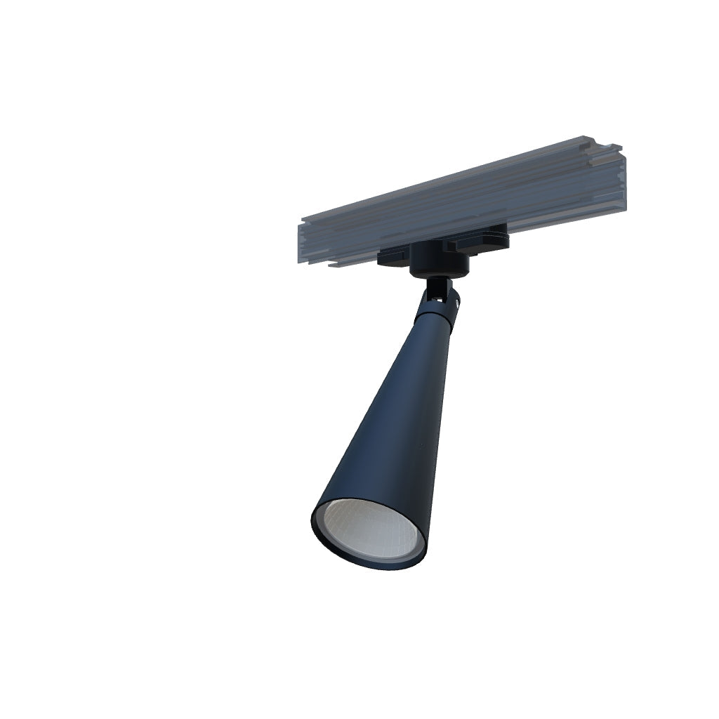 Konischer Strahler für 1-Phasen-Stromschiene mit GU10-Fassung.
