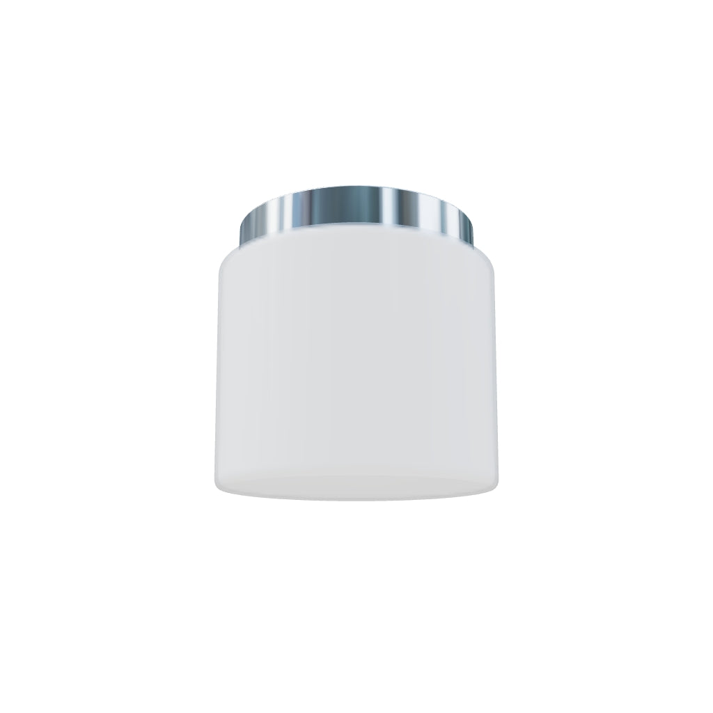 Deckenzylinder aus Opalglas auf Chrombasis für feuchte Umgebungen.