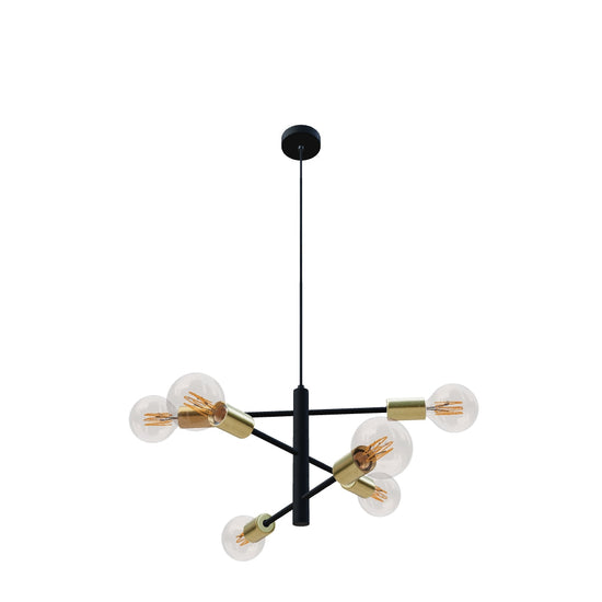Pendelleuchte mit dekorativen Fassungskappen aus Messing. Die Leuchte kann durch Verstellen der Arme in der horizontalen Achse geformt werden. Für LED-Wandleuchten mit E27-Fassung geeignet.