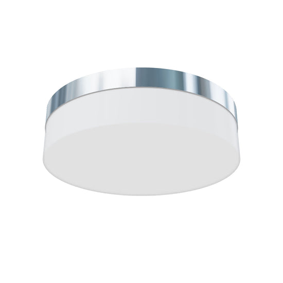 LED-Deckenleuchte mit Opalglas. Deckenbasis in Chrom oder Mattnickel. Geeignet für feuchte Umgebungen.