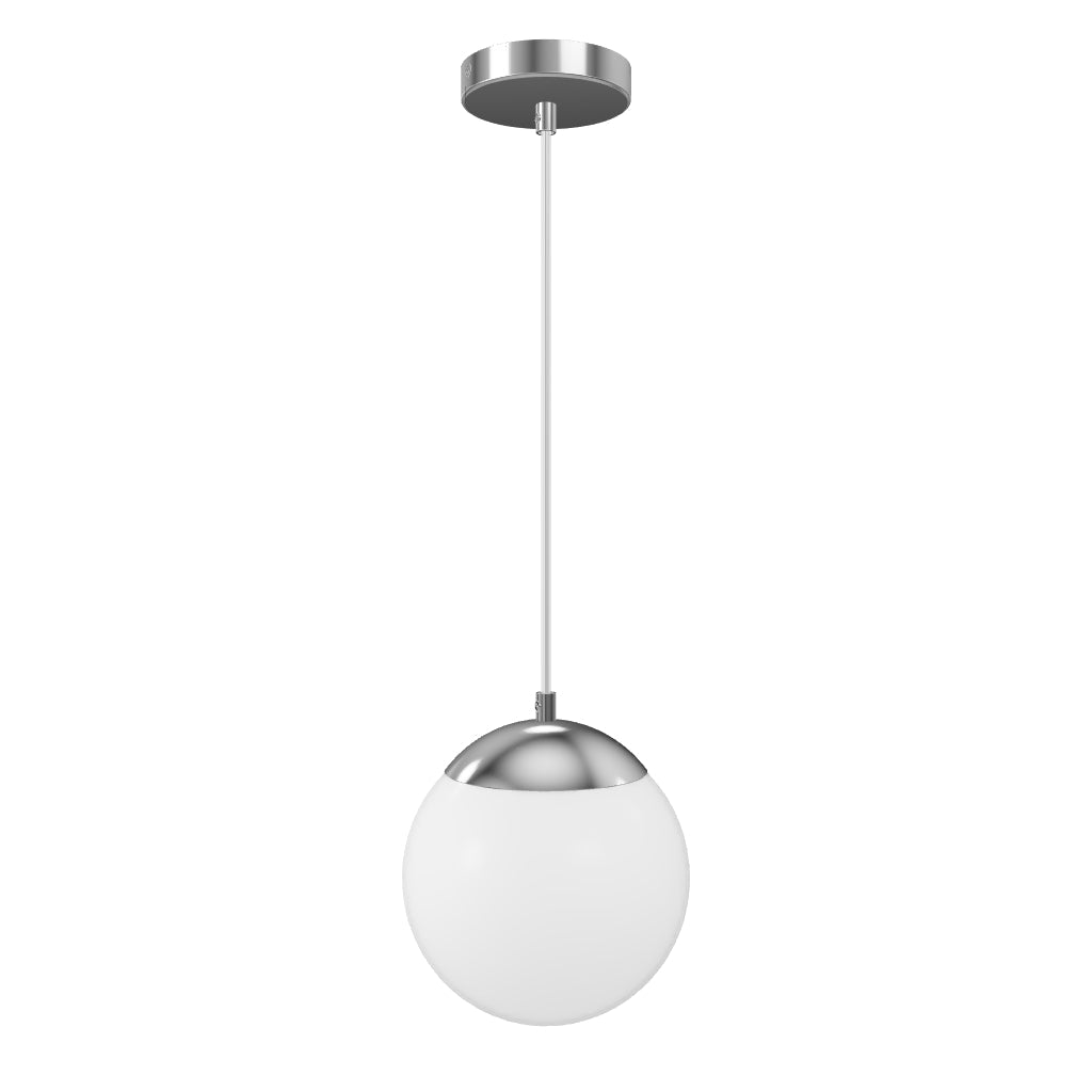 Pendelleuchte mit Opalglas und Chromelementen. Geeignet für feuchte Umgebungen.