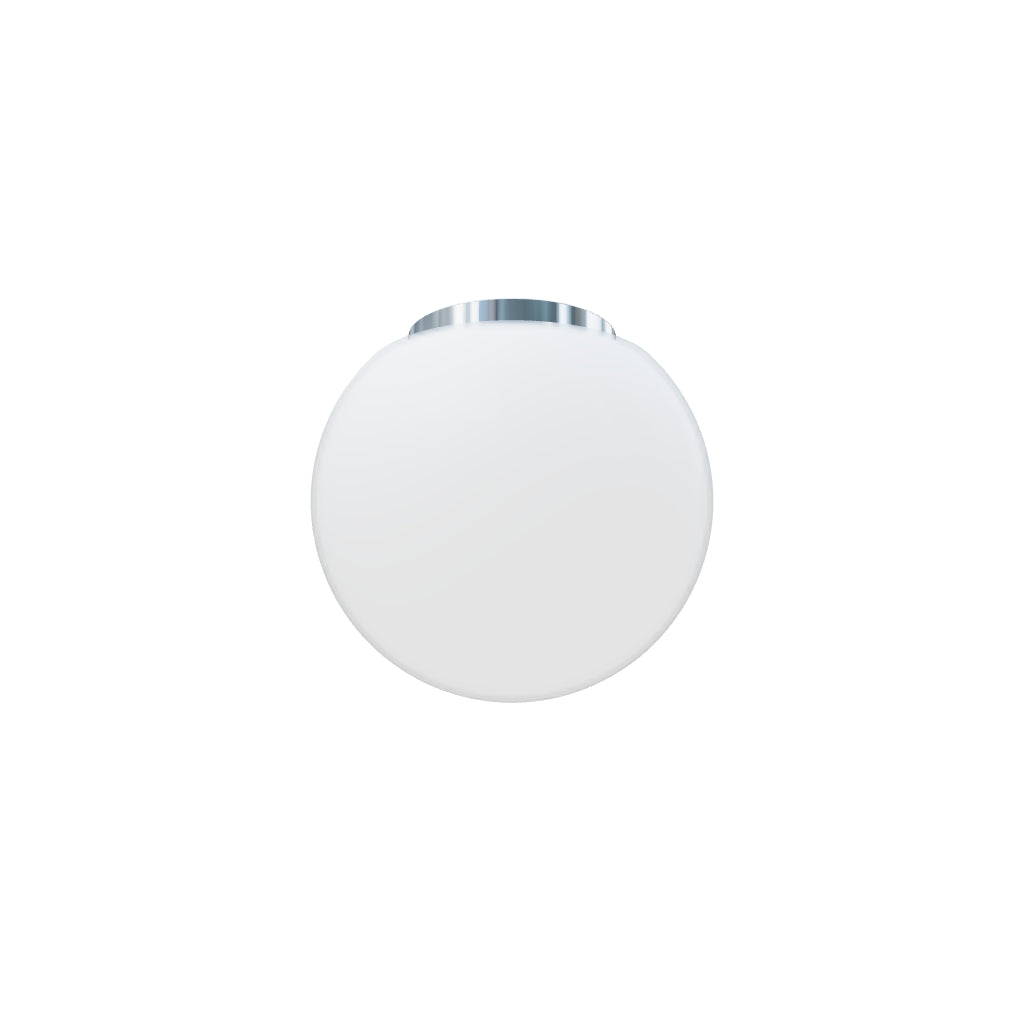 Deckenleuchte aus Opalglas auf Chromsockel. Geeignet für feuchte Umgebungen