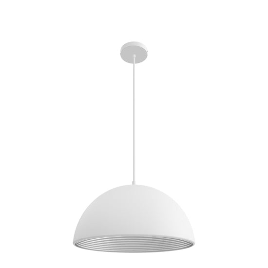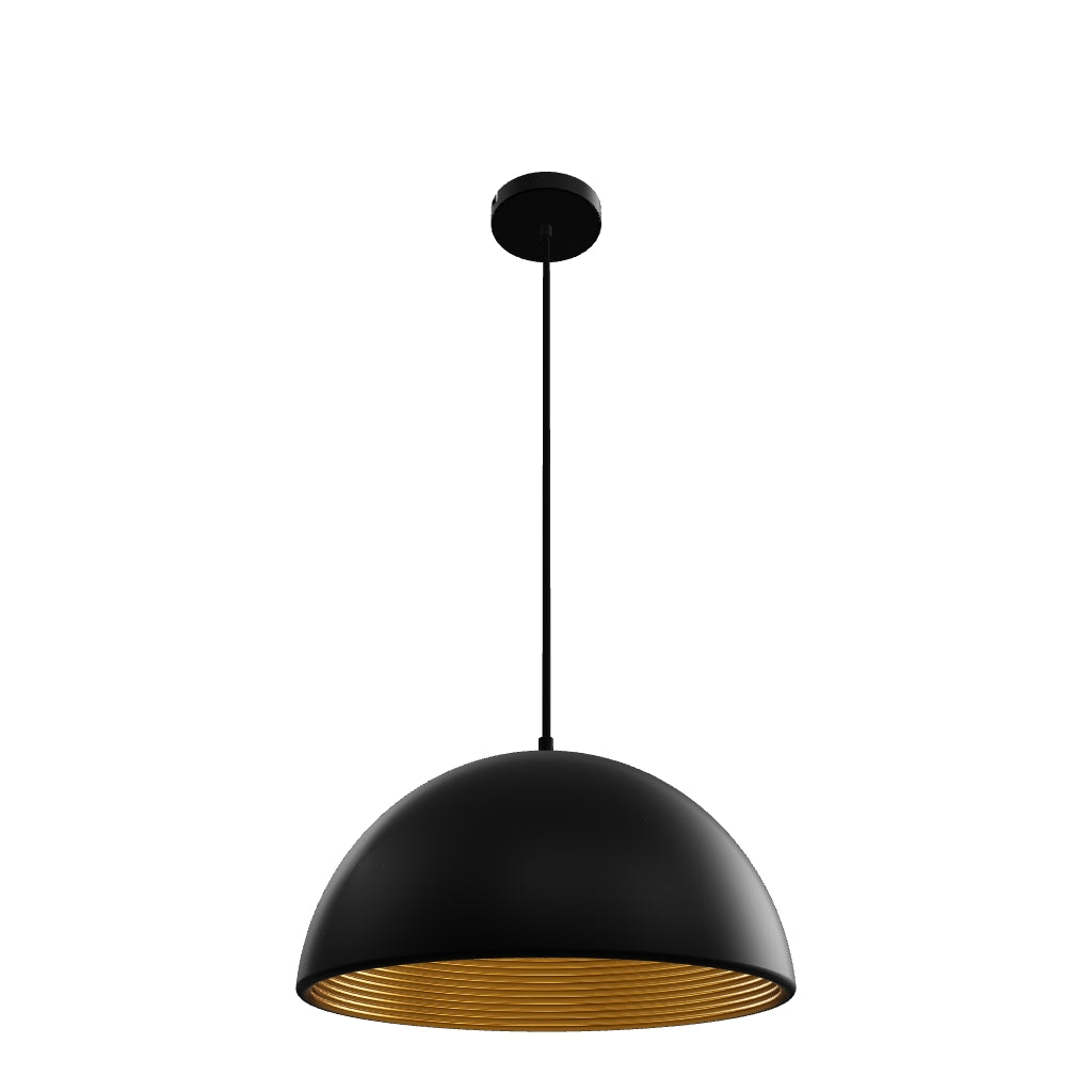 Pendelleuchte mit Metallschirm und Innenreflektor.