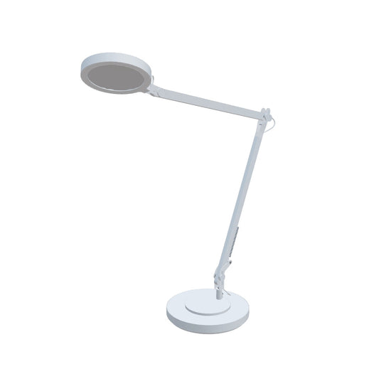 LED-Schreibtischlampe mit zwei Armen. Der Intensitätsregler befindet sich auf der Oberseite des Strahlers. Dreistufige Dimmung. Möglichkeit zur Befestigung der Lampe an einer Tischplatte oder einem Regal nach dem Kauf einer separaten EMA-Halterung (R14290, R14291).