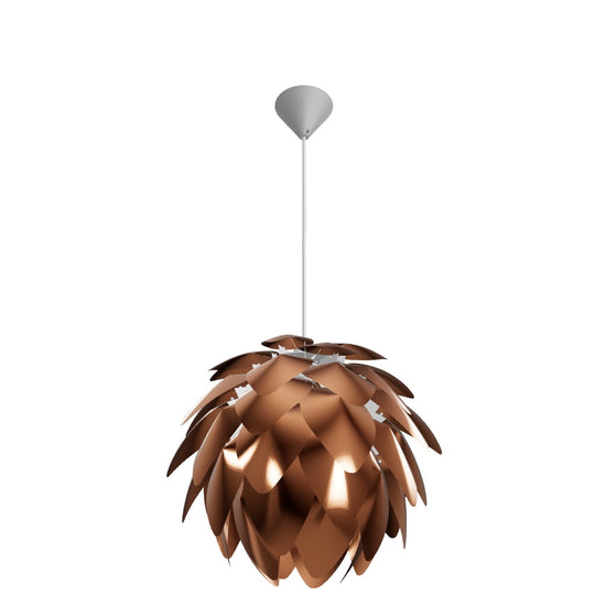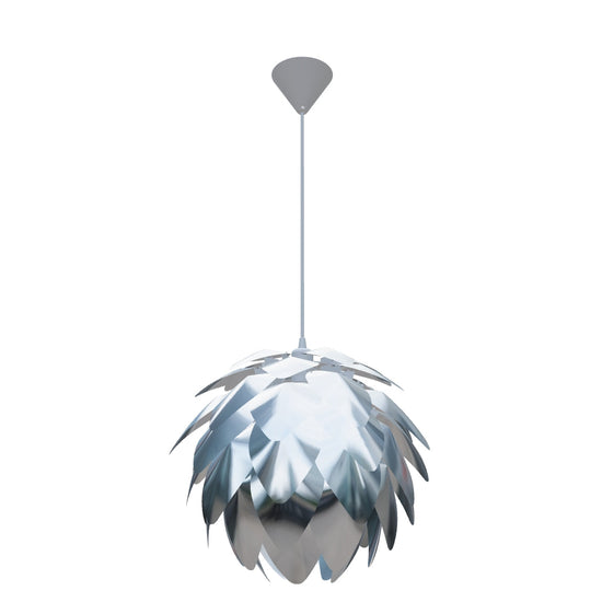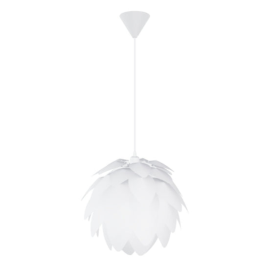 Dekorative Pendelleuchte aus Kunststoffblättern in drei Farbvarianten. Lieferung zerlegt, Montage erforderlich.