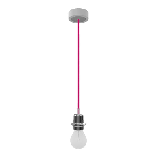 Aufhängeset mit lackiertem Aluminiumbasis, E27-Metallfassung und Textilkabel. Zur alleinigen Verwendung oder zum Aufhängen leichter Lampenschirme. Geeignet für Lampenschirme: ARISTA, DELI, JAKARANDA, DOUBLE 40/30, DOUBLE 55/30, ASPRO 40/30, RON 40/25, RON 55/30, RON 60/19, TEMPO 30/19, TEMPO 50/19.