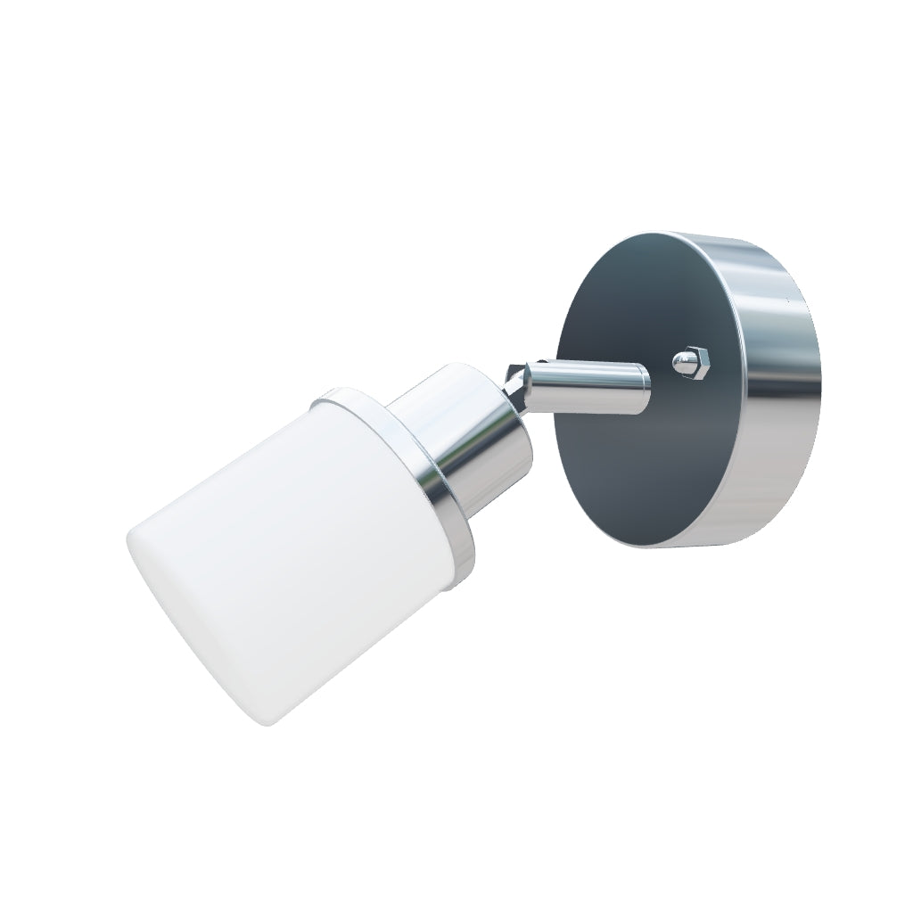 Wand- oder Deckenleuchte mit Opalglas auf Chrombasis. Geeignet für feuchte Umgebungen.