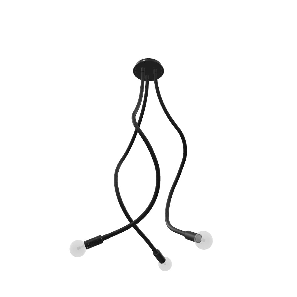 Dreifache flexible Deckenleuchte mit Silikonschlauch zur flexiblen Einstellung in alle Richtungen. Zur Verwendung mit Dekor- oder Reflektorlampe E27.