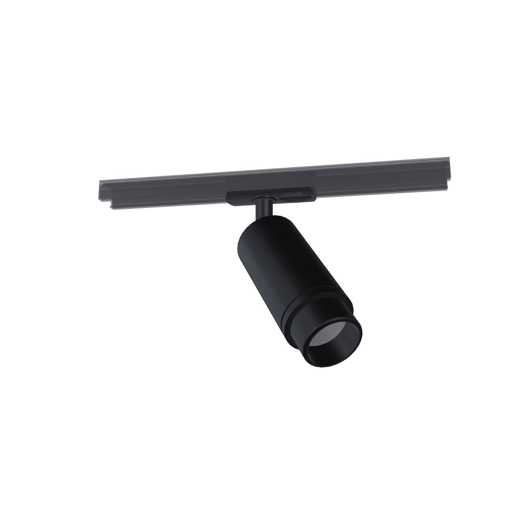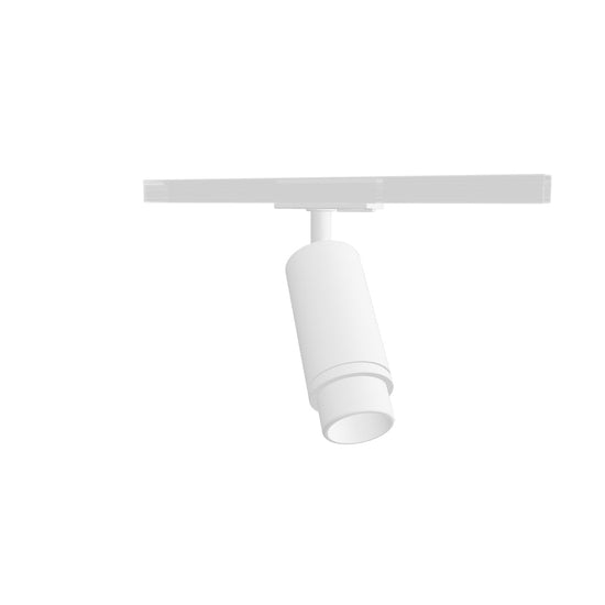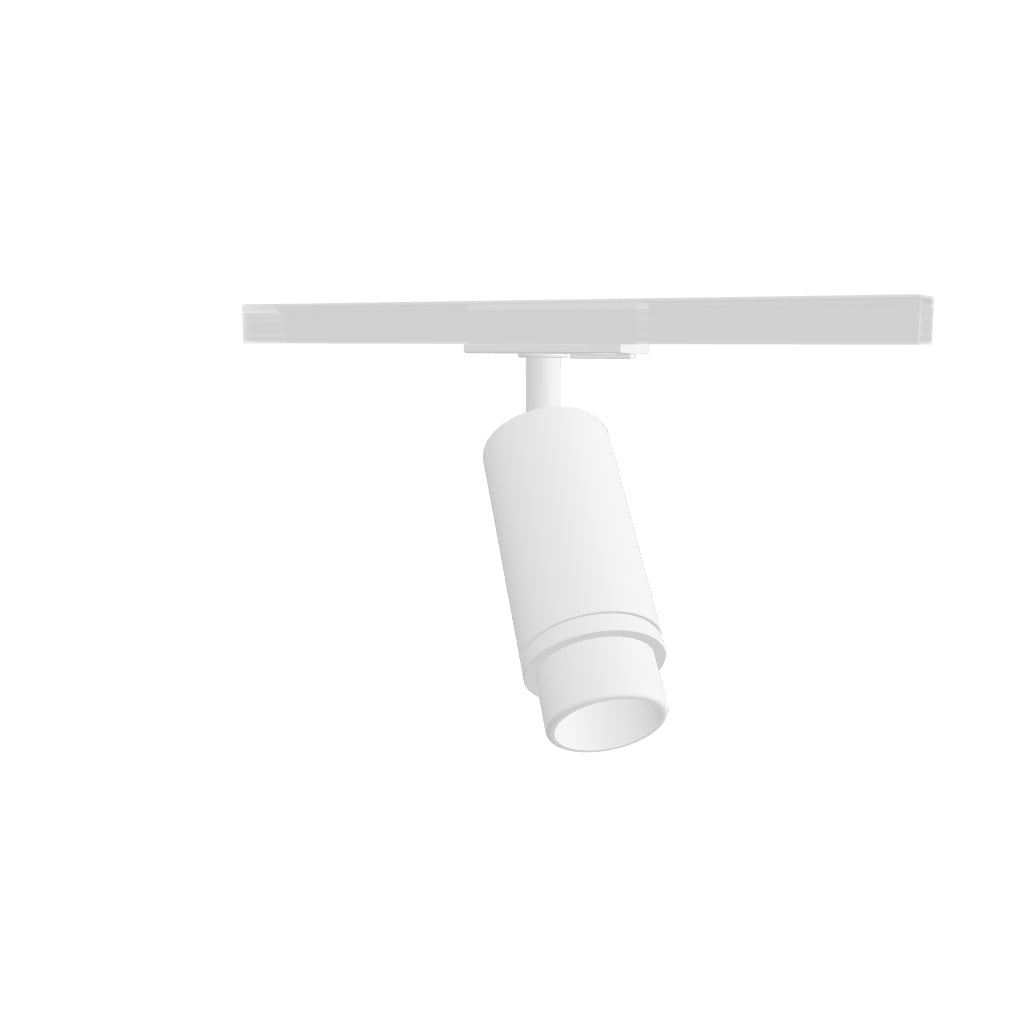 Zylinderförmige Deckenleuchte für 1-Phasen-Stromschiene mit Anpassungsmöglichkeit des Lichtkegels durch ein Zoom System 10-50°. Die Leuchte ist für LED Lichtquellen mit einem GU10-Fassung geeignet. Benutzen sie Lichtquellen mit einem Abstrahlwinkel von 120°, um ungewünschte Schatten zu verhindern.