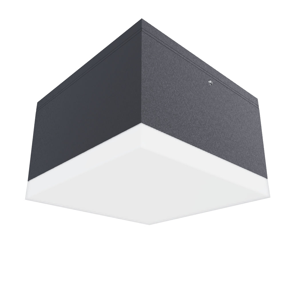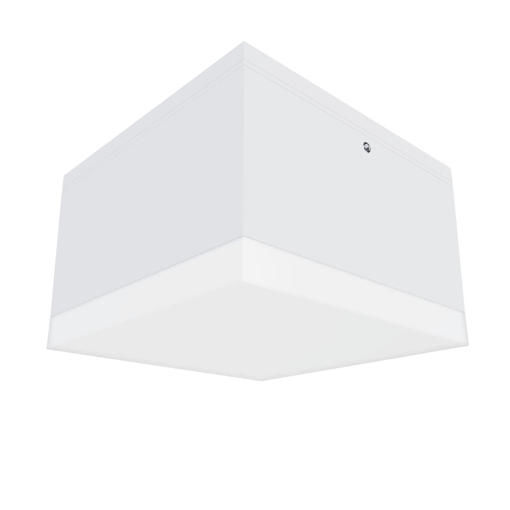 Quadratische LED-Deckenleuchte für Außen mit satiniertem Glas.