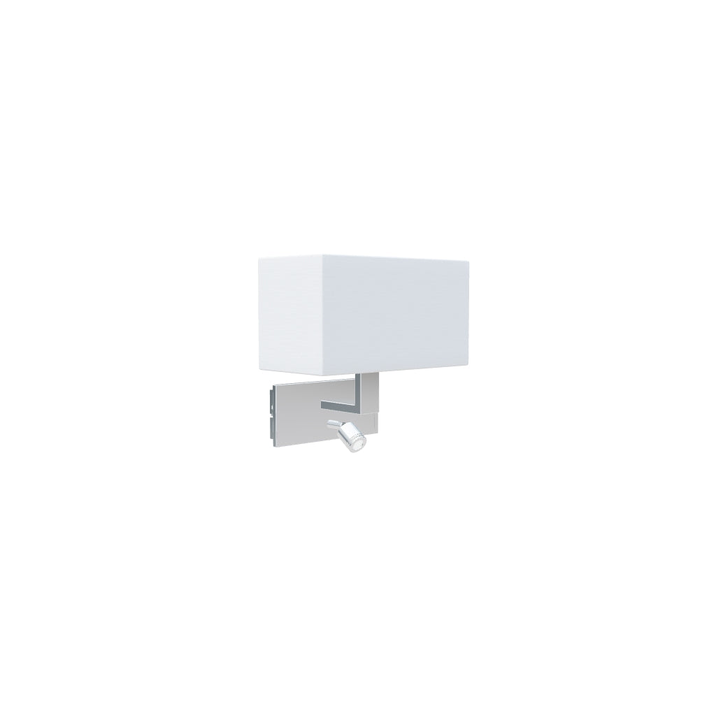 Wandleuchte mit strukturiertem Textilschirm und zusätzlichem 3 W LED-Strahler. Beide Lichtquellen werden separat über einen Schalter an der Basis gesteuert.