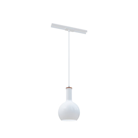 Pendelleuchte mit milchfarbenem Glasschirm und Adapter für 1-Phasen-Stromschiene.