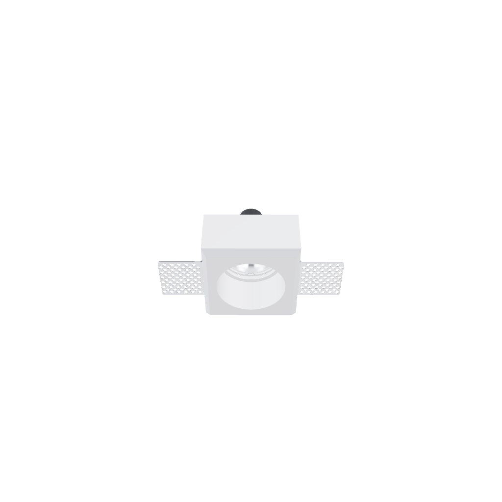 Runde Einbauleuchte aus Gips, rahmenlos, nur zur Montage in Gipskartondecken. Die Leuchte lässt sich mit Interieurfarben überstreichen.