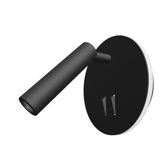 Wand-LED-Leuchte mit Strahler, ergänzt durch indirekte Beleuchtung. Die Leuchte verfügt über zwei Lichtquellen, die separat mit Schaltern an der Basis der Leuchte gesteuert werden können.