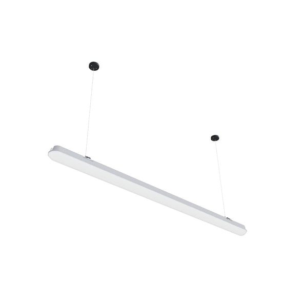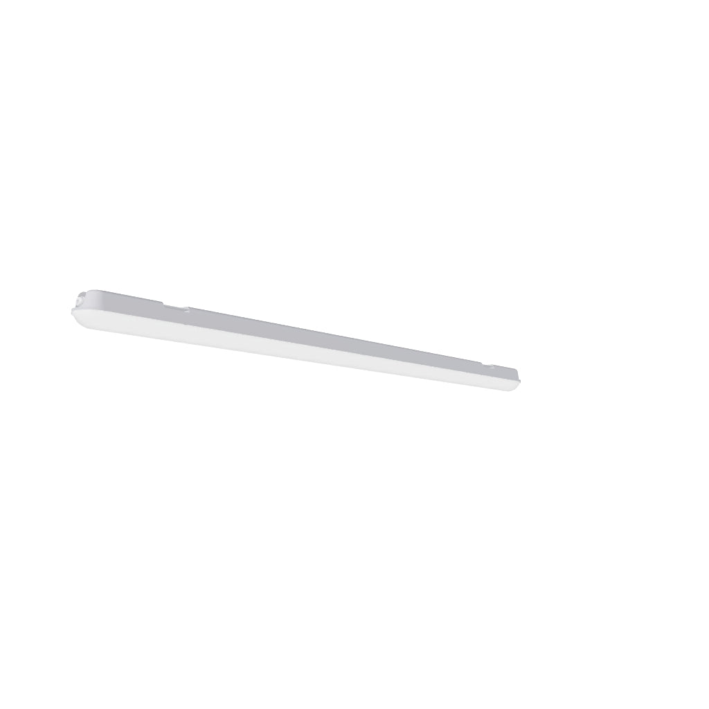 Industrielle lineare LED-Leuchte zur Deckenmontage oder Deckenaufhängung mit dem G13672-Set. Hohe Leistung und IP65-Schutz. Lieferung ohne Aufhängungssatz und Netzkabel. Mehrere Leuchten können in Reihe geschaltet werden.