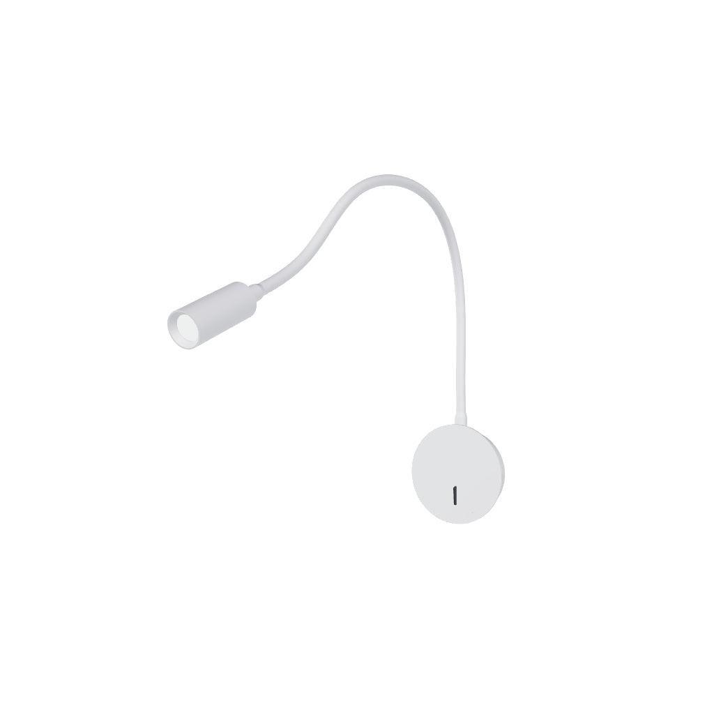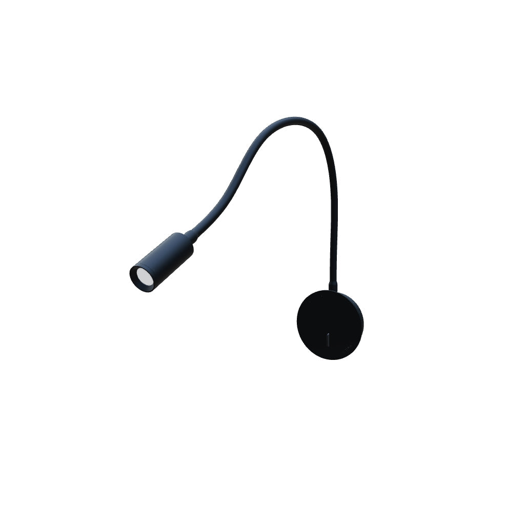 Wand-LED-Lampe an einem flexiblen Hals mit einem Schalter am Sockel. Das Kabel kann durch eine Öffnung an der Basis in die Steckdose eingesteckt werden. Das Kabel wird nicht mitgeliefert.