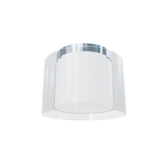 Deckenleuchte in einer Kombination aus innerem Opal und äußerem Klarglas auf Chrombasis für LED-Lampen mit E27 Fassung. Für feuchte Umgebungen geeignet.